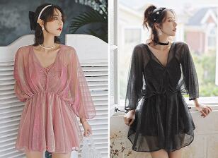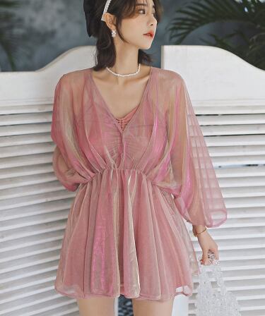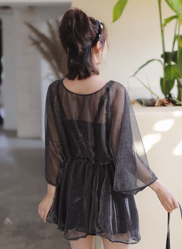 水着 レディース 紐 ショートパンツ 羽織り パッド付き レース バックリボン シースルー スリーピース シンプル おしゃれ セクシー 無地 温泉 プール 夏 海 10代 20代 30代 40代 脚長 韓国 体型カバー 日除け 2XL 3XL 4XL 5XL ぽっちゃり M L XL 黒 ピンク