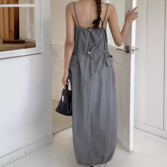 レディース ワンピース オーバーオールスカート ロング ノースリーブ オーバーオールスカート ウエストマーク ふっくら ポケット ハイウエスト 薄手 かわいい 大人可愛い シンプル アジアン ラフ リラックス 無地 夏 授業参観 ママ 10代 20代 30代 40代 デート お出かけ アウトドア キャンプ リゾート 海 プール ビーチ 公園 休日 ショッピング お揃い 双子 韓国 楽ちん 美脚 普段使い 着回し インスタ映え スタイルアップ フリーサイズ 黒 グレー