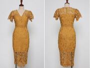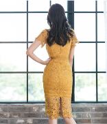 ドレス ステージ 舞台 キャバ ダンス 衣装 コスプレ クラブ ミディ 半袖 レギュラー Vネック 襟なし タイト スリム クロスボーダー レース ファスナー 透け感 薄手 ポリエステル繊維 大人可愛い おしゃれ アジアン エレガント 主役級 エレガント セクシー 無地 パーティー イベント リゾート ホテル レストラン 韓国 脚長 春 パーティー 舞台 演劇 キャバ クラブ S M L XL 黄色 レッド