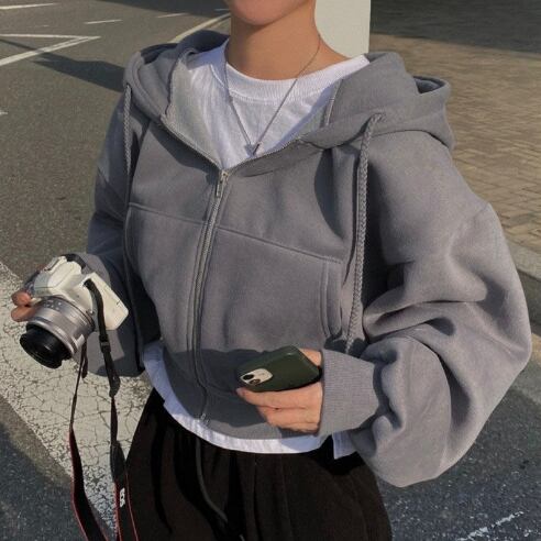 レディース トップス パーカー スウェット 裏起毛 前開き ショート 長袖 レギュラースリーブ 襟なし フード タイト ふっくら ファスナー ポケット 厚手 裏起毛 ポリエステル 混紡生地 かわいい シンプル カジュアル おしゃれ かっこいい ラフ リラックス 無地 秋 冬 ハロウィン 大会 10代 20代 部活 デート お出かけ アウトドア キャンプ ジム 公園 ショッピング 脚長 普段使い 着回し 定番 M L XL 2XL 白 黒 グレー ダークグレー 黄色 ネイビー ライトブルー