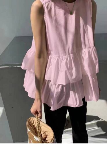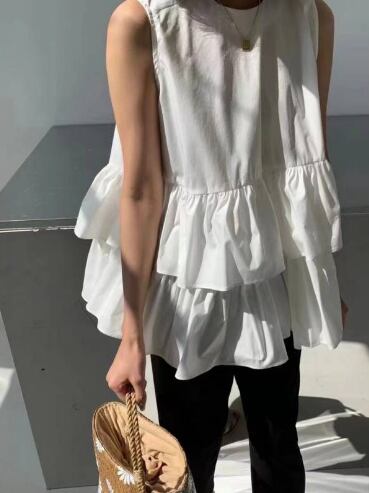 レディース トップス シャツ レギュラー丈 ノースリーブ クルーネック Aライン フリル バックリボン ハイウエスト 薄手 コットン ポリエステル かわいい カジュアル アジアン リラックス 無地 夏 ママ マタニティ 10代 20代 デート お出かけ アウトドア キャンプ イベント 海 プール ビーチ 公園 女子会 ショッピング コンサート ライブ 合コン コンパ カフェ お揃い 楽ちん プレゼント レイヤード スタイルアップ ゆったり フリーサイズ 白 黒 ピンク アプリコット