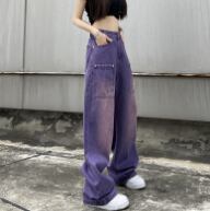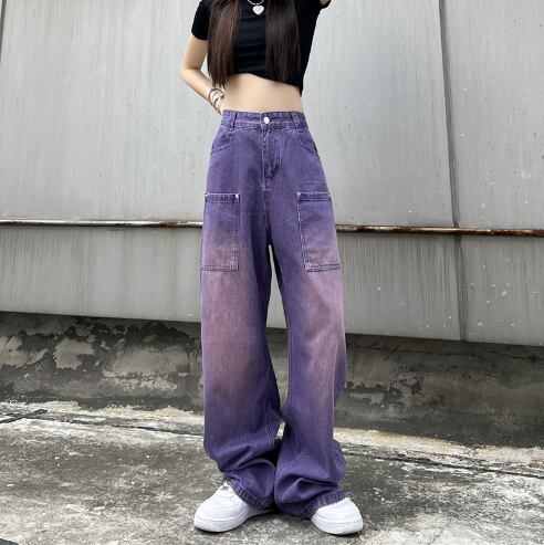 レディース パンツ Gパン ロング ワイド ストレート ファスナー ポケット ハイウエスト ボタン ダメージ デニム コットン ポリエステル かわいい シンプル カジュアル おしゃれ かっこいい アジアン ラフ リラックス 無地 グラデーション 夏 授業参観 ママ 10代 20代 30代 40代 学生 通学 デート お出かけ アウトドア キャンプ イベント リゾート 旅行 海 公園 女子会 ショッピング コンサート ライブ 合コン コンパ カフェ S M L XL 2XL 3XL 紫