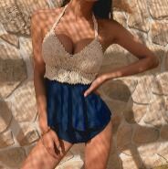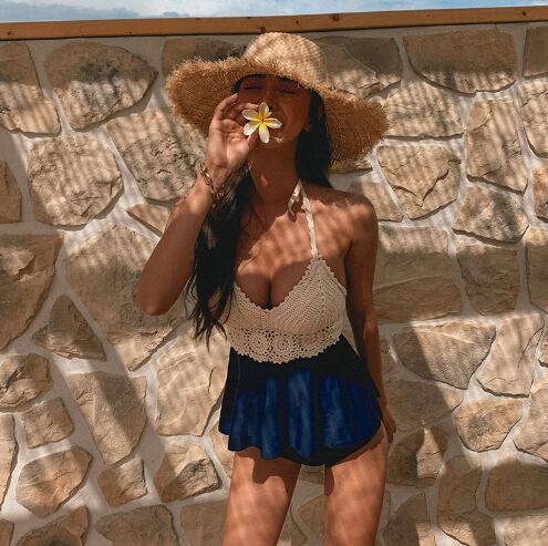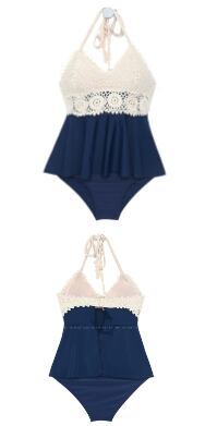 水着 レディース オフショル ノンワイヤー パッド付き リボン レース 切り替え かわいい シンプル カジュアル おしゃれ レトロ ヘルシー 無地 リゾート 旅行 温泉 プール 夏 海 ビーチ 10代 20代 脚長 背中見せ スタイルカバー M L ブルー